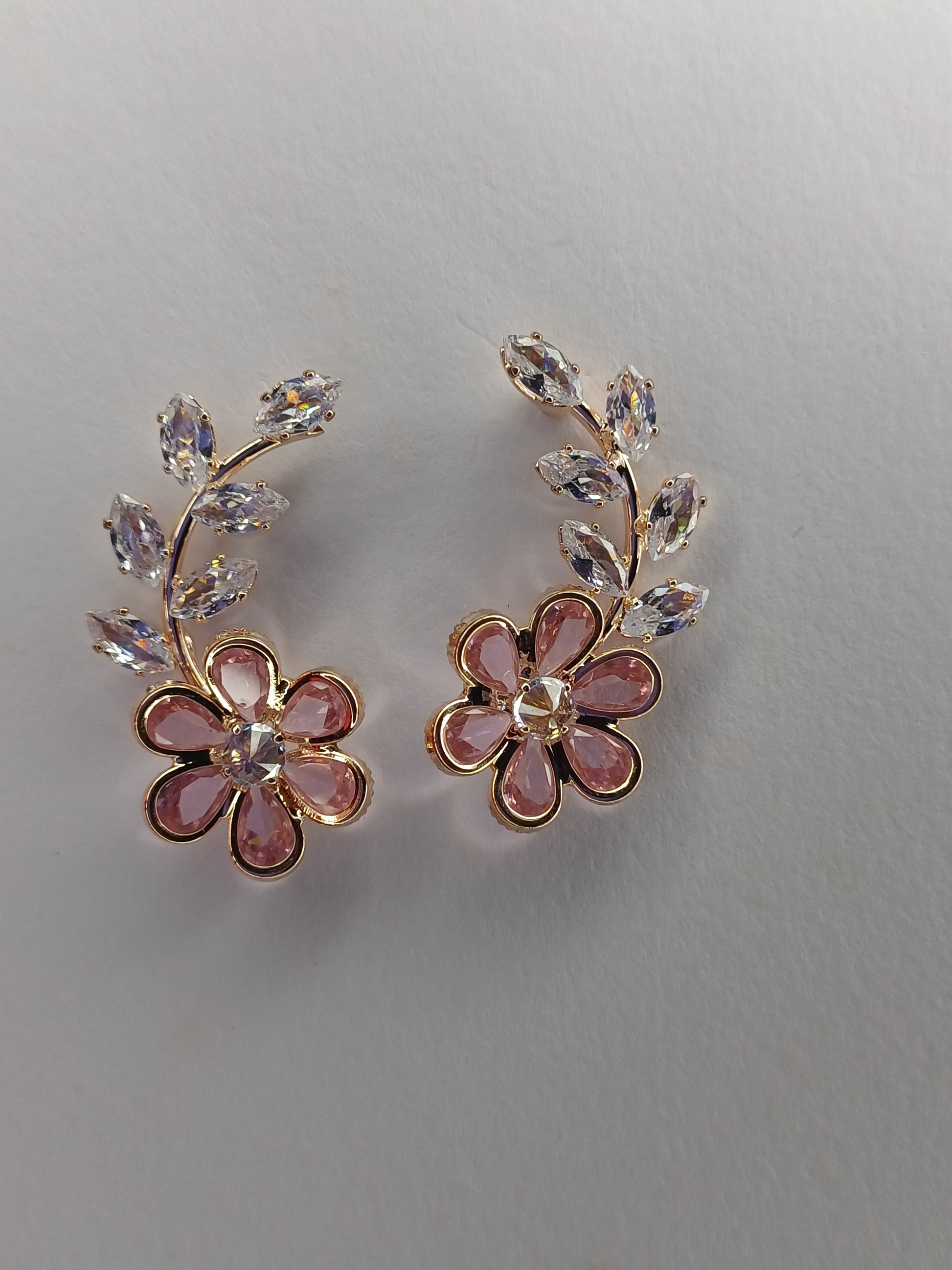Elevate your elegance with Blushie, a pair of exquisitely handcrafted floral earrings that blend timeless beauty with modern sparkle. Designed for women who love to stand out with subtle charm, these earrings feature delicate pink teardrop petals arranged into a graceful flower, crowned with brilliant white crystal marquise stones that mimic leafy branches.